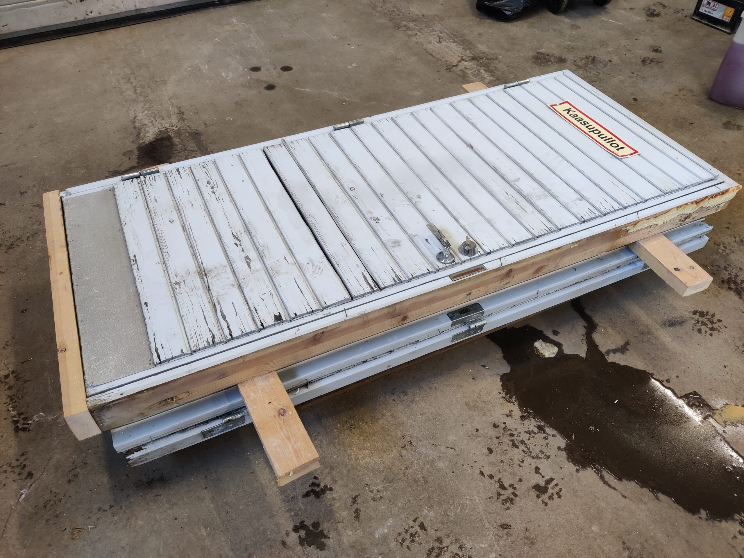 2kpl ovia, molemmissa lukot johon käy sama avain. Ei kynnyksiä, molemmat karmit hieman pehmenneet ala osasta mutta ovat kuivat tällä hetkellä.