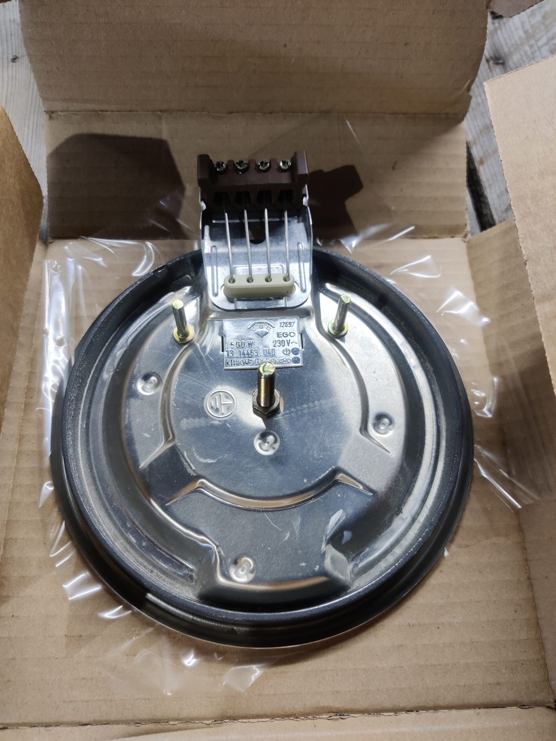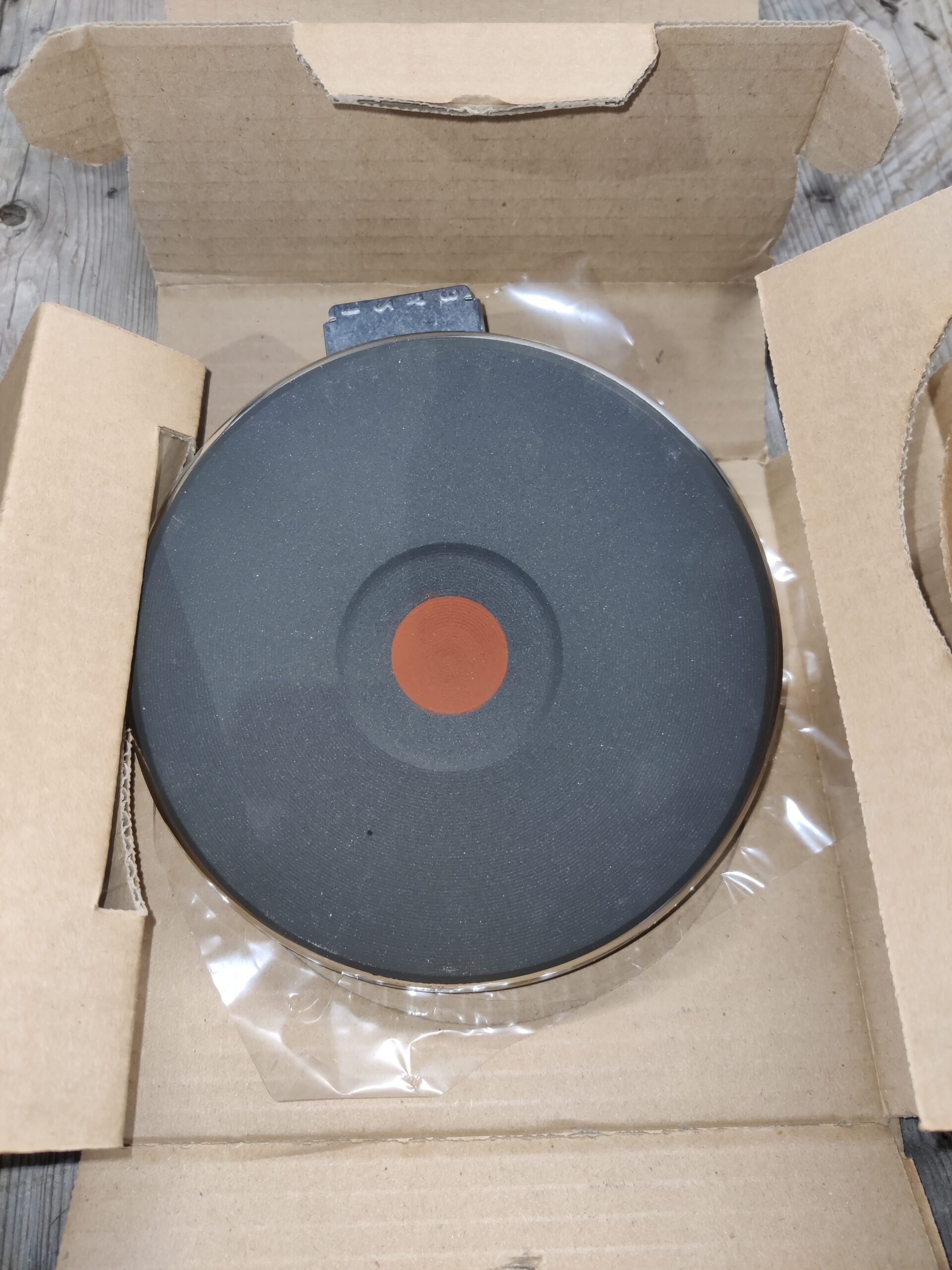 Uusi keittolevy tehtaan paketissa.