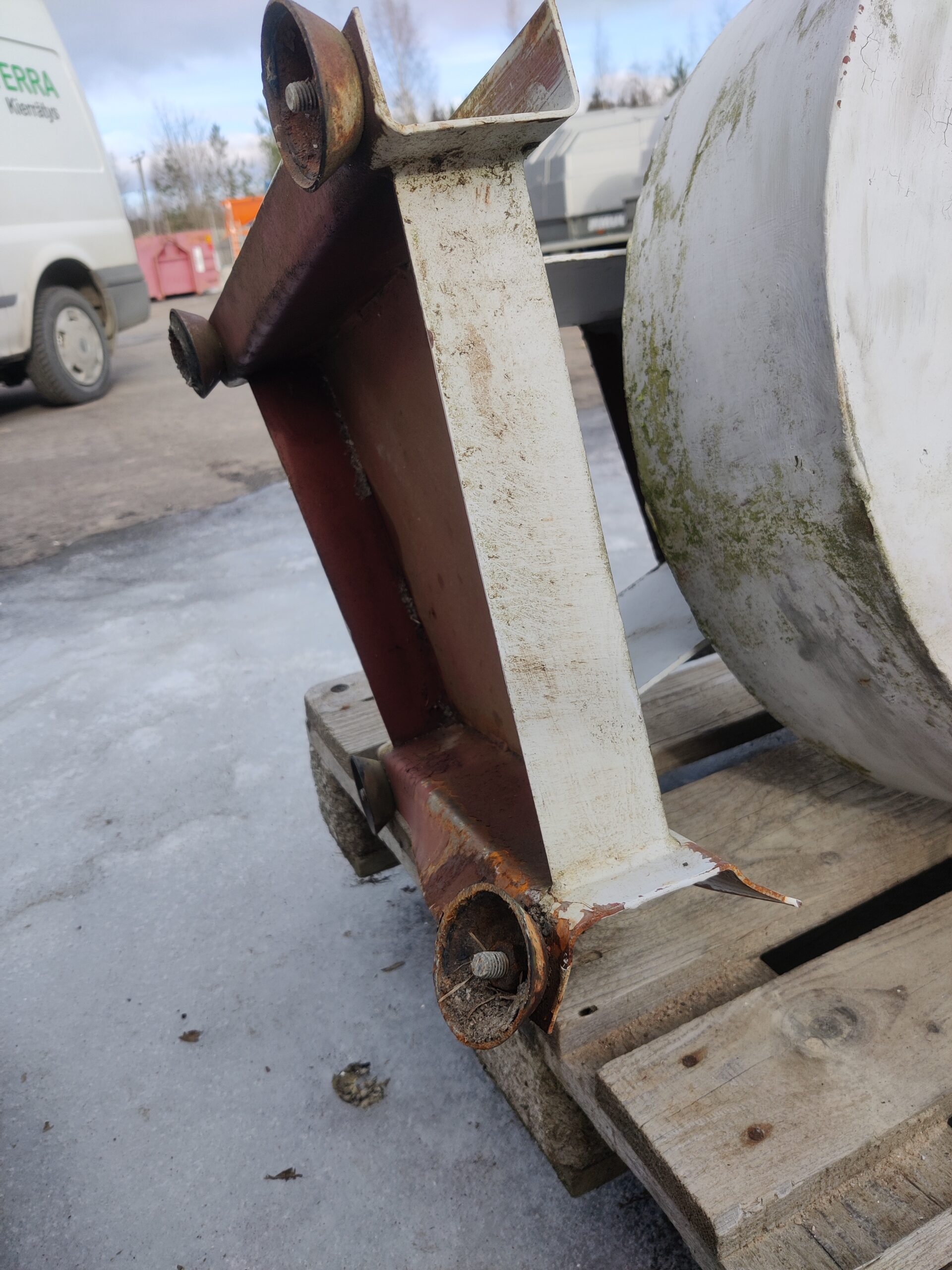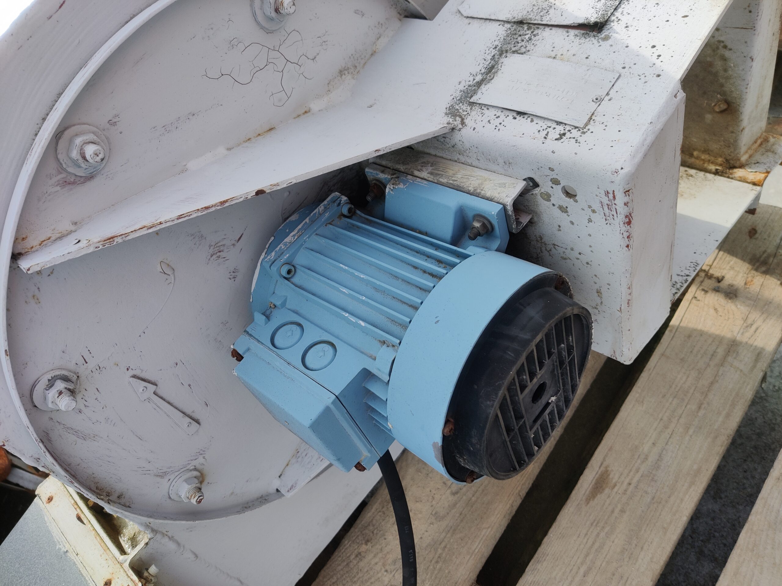 Toimiva puhallin hitsaus yms kaasujen poistoon. Teline saanut vähän osumaa. Ollut rakennuksen katolla.