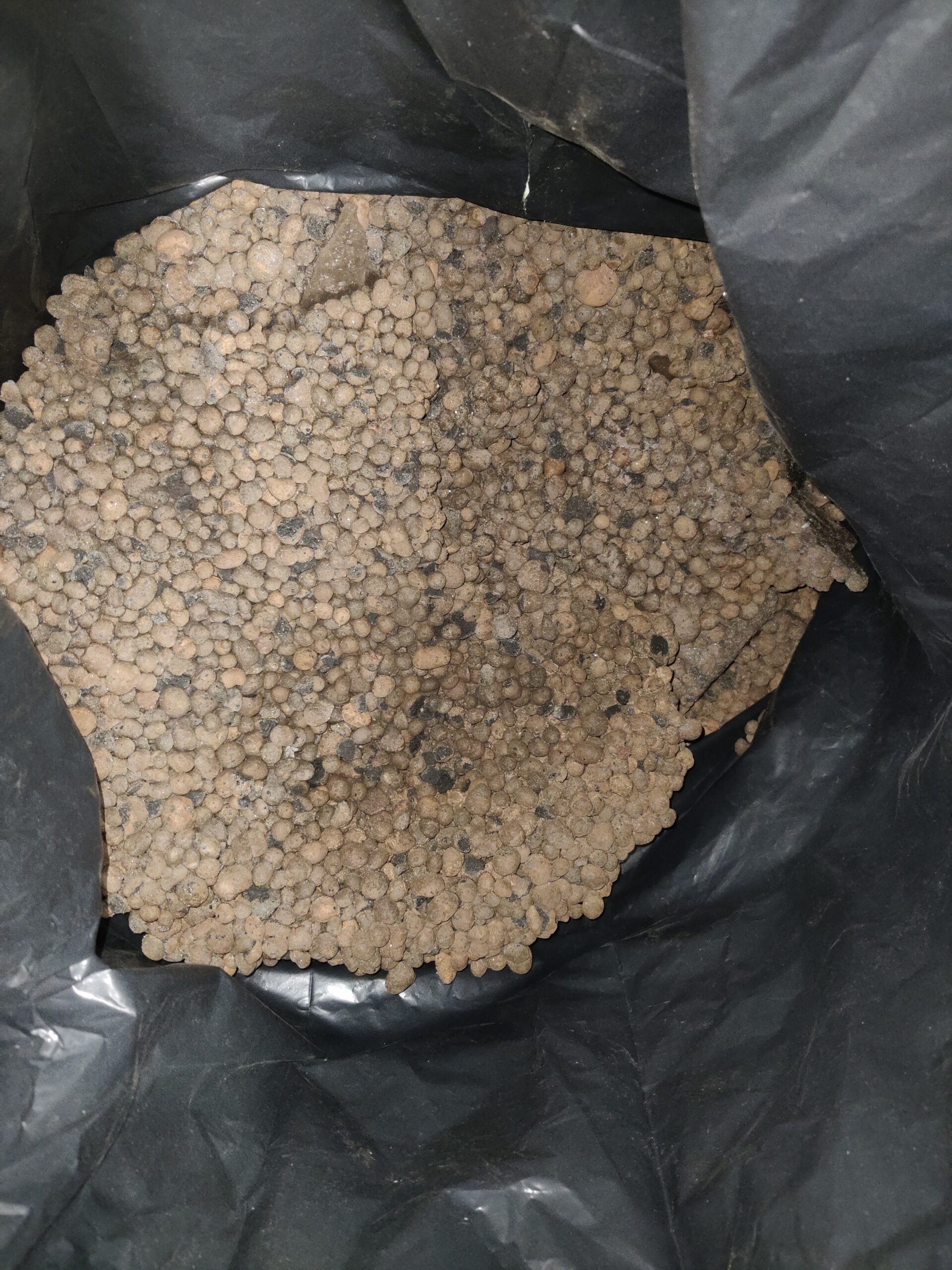 Alkuperäinen pakkaus hajonnut ja pakattu jätesäkkiin.