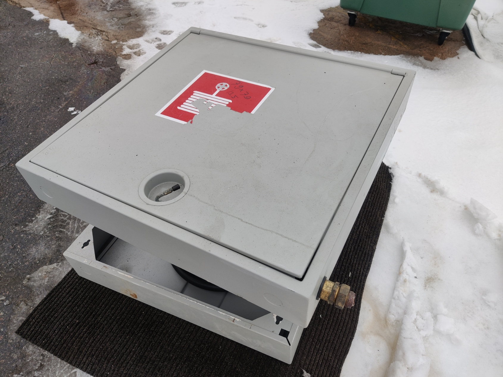 Seinään upotettava paloposti, ehjä ja siisti.