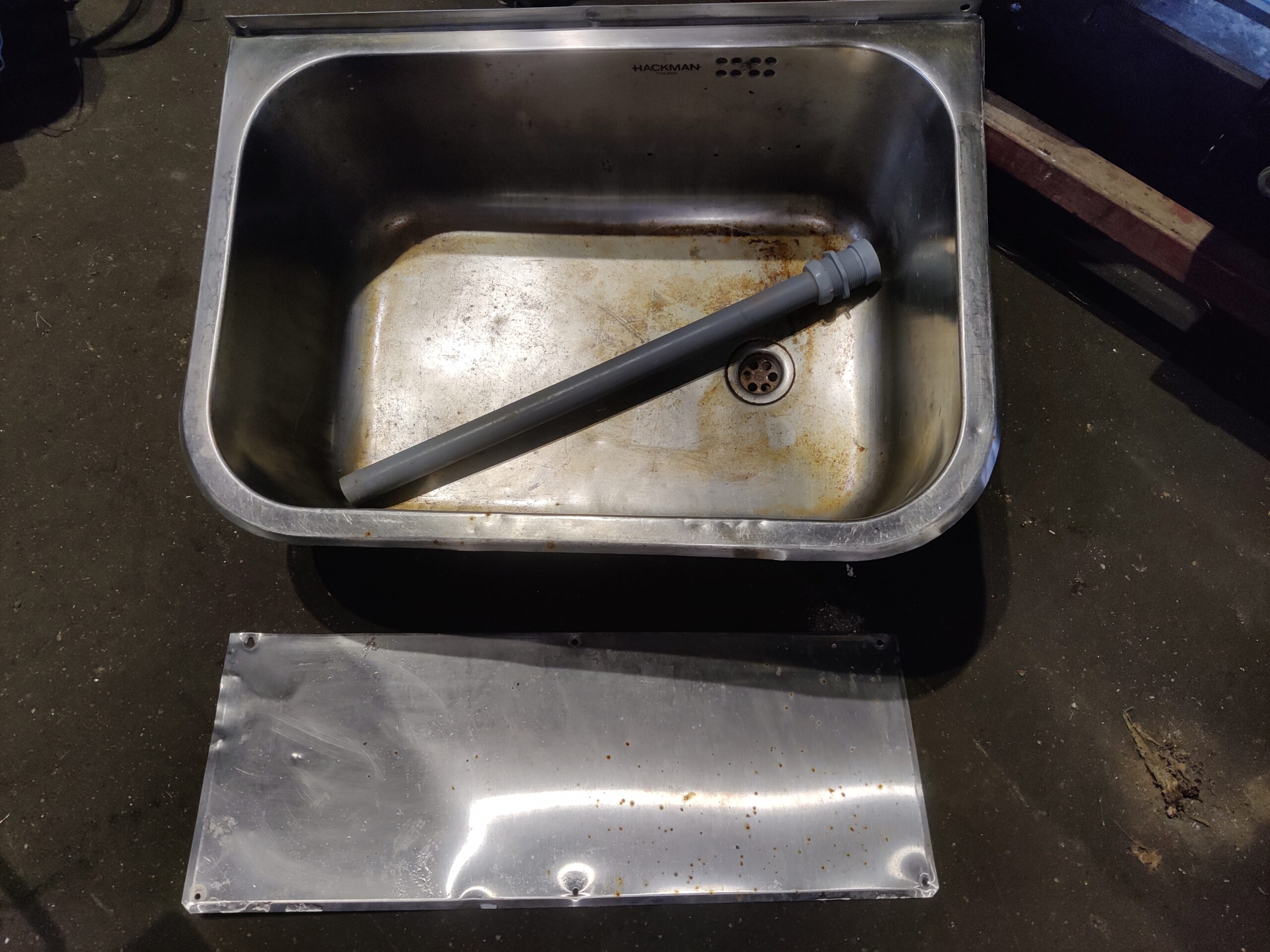 Viemäri ilman hajulukkoa, seinäkannakkeet, roiskepelti.